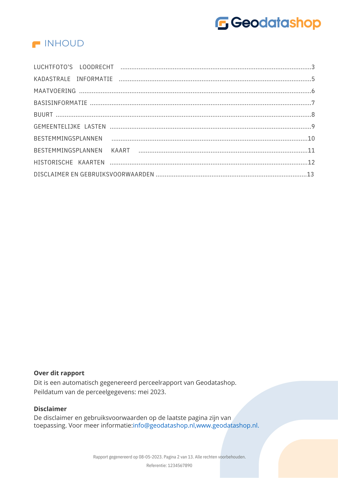 Informatie over een specifiek kadaster perceel, inclusief basisgegevens, luchtfoto’s, kadastrale kaart, maatvoeringkaart, bestemmingsplannen, en historische situatie.