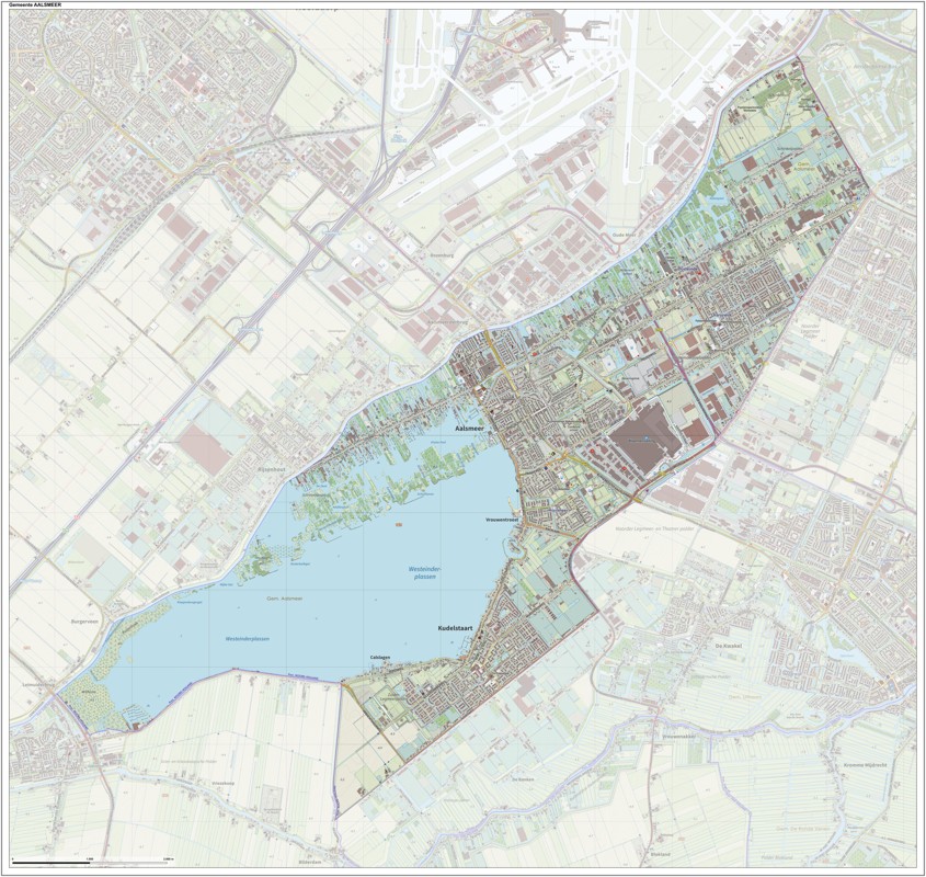 Gemeentekaart Aalsmeer, volgens de veelgebruikte TopoPlus-opmaak. Peildatum: juni 2023.
