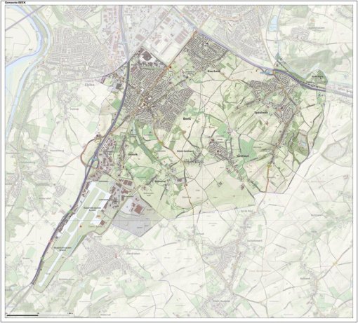 Gemeentekaart Beek, volgens de veelgebruikte TopoPlus-opmaak. Peildatum: juni 2023.