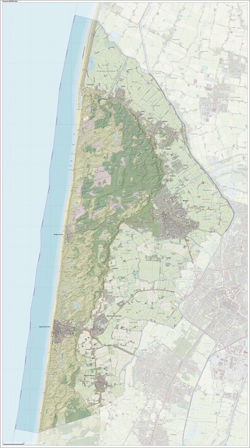 Gemeentekaart Bergen (NH), volgens de veelgebruikte TopoPlus-opmaak. Peildatum: juni 2023.