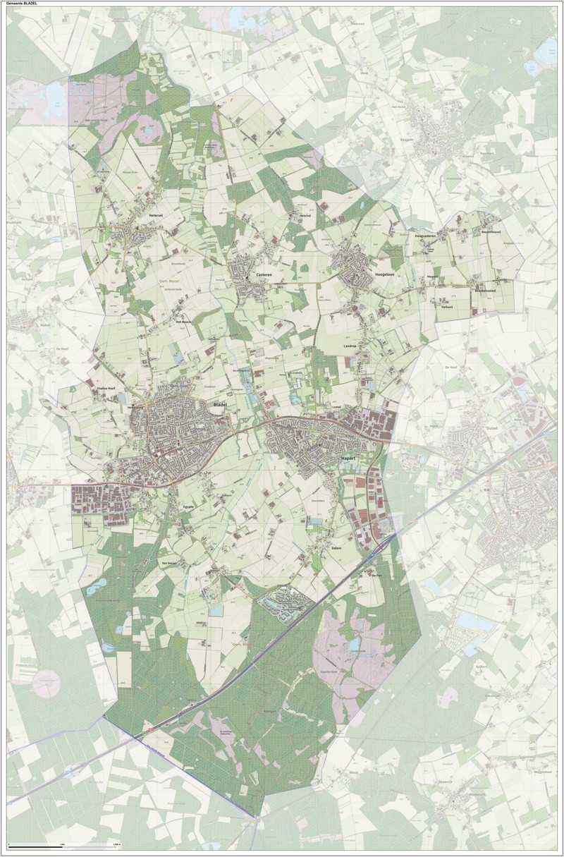 Gemeentekaart Bladel, volgens de veelgebruikte TopoPlus-opmaak. Peildatum: juni 2023.