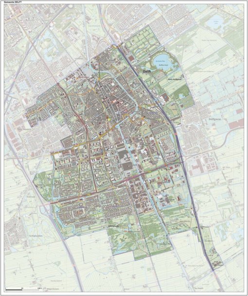 Gemeentekaart Delft, volgens de veelgebruikte TopoPlus-opmaak. Peildatum: juni 2023.