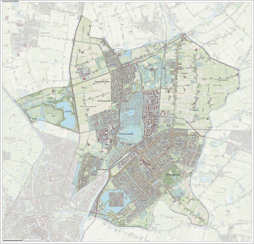 Gemeentekaart Dijk en Waard, volgens de veelgebruikte TopoPlus-opmaak. Peildatum: juni 2023.