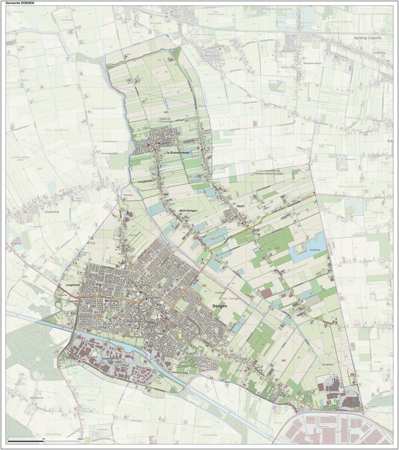 Gemeentekaart Dongen, volgens de veelgebruikte TopoPlus-opmaak. Peildatum: juni 2023.