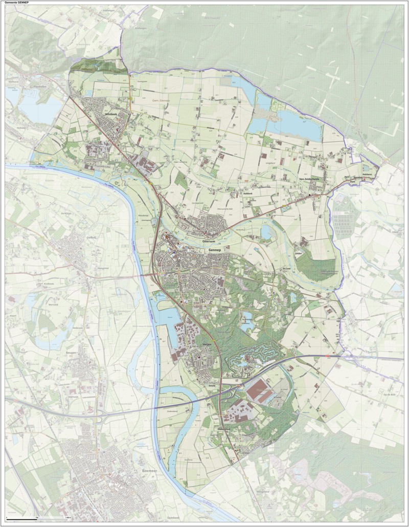 Gemeentekaart Gennep, volgens de veelgebruikte TopoPlus-opmaak. Peildatum: juni 2023.