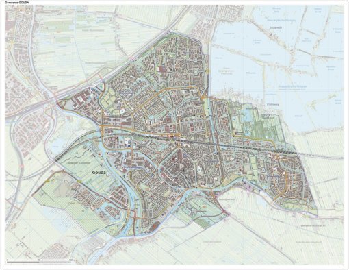 Gemeentekaart Gouda, volgens de veelgebruikte TopoPlus-opmaak. Peildatum: juni 2023.