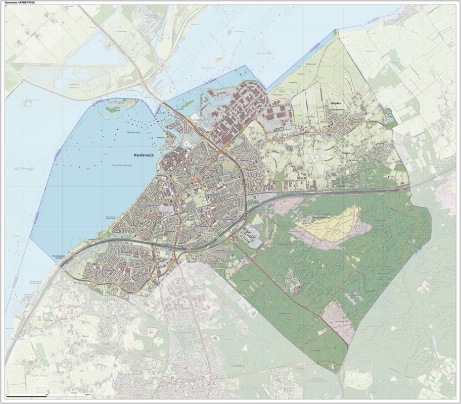 Gemeentekaart Harderwijk, volgens de veelgebruikte TopoPlus-opmaak. Peildatum: juni 2023.