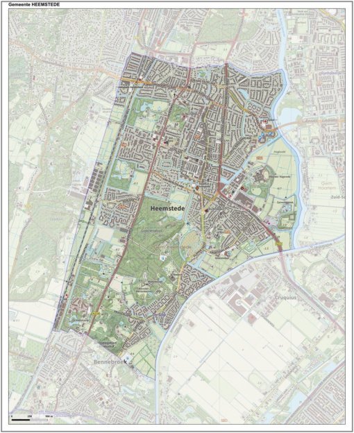 Gemeentekaart Heemstede, volgens de veelgebruikte TopoPlus-opmaak. Peildatum: juni 2023.