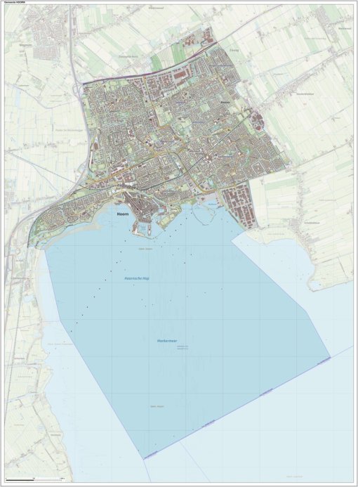 Gemeentekaart Hoorn, volgens de veelgebruikte TopoPlus-opmaak. Peildatum: juni 2023.