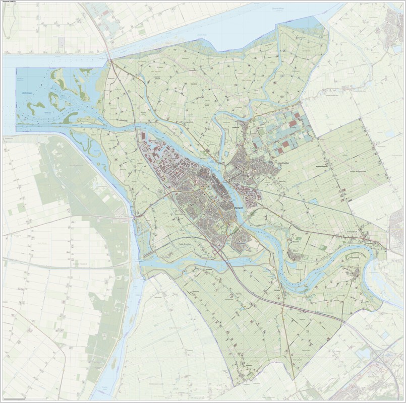 Gemeentekaart Kampen, volgens de veelgebruikte TopoPlus-opmaak. Peildatum: juni 2023.