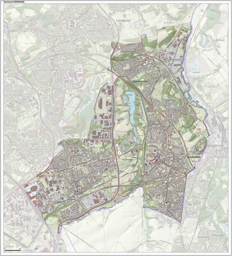 Gemeentekaart Kerkrade, volgens de veelgebruikte TopoPlus-opmaak. Peildatum: juni 2023.