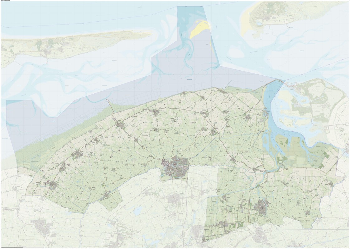 Gemeentekaart Noardeast-Fryslân, volgens de veelgebruikte TopoPlus-opmaak. Peildatum: juni 2023.