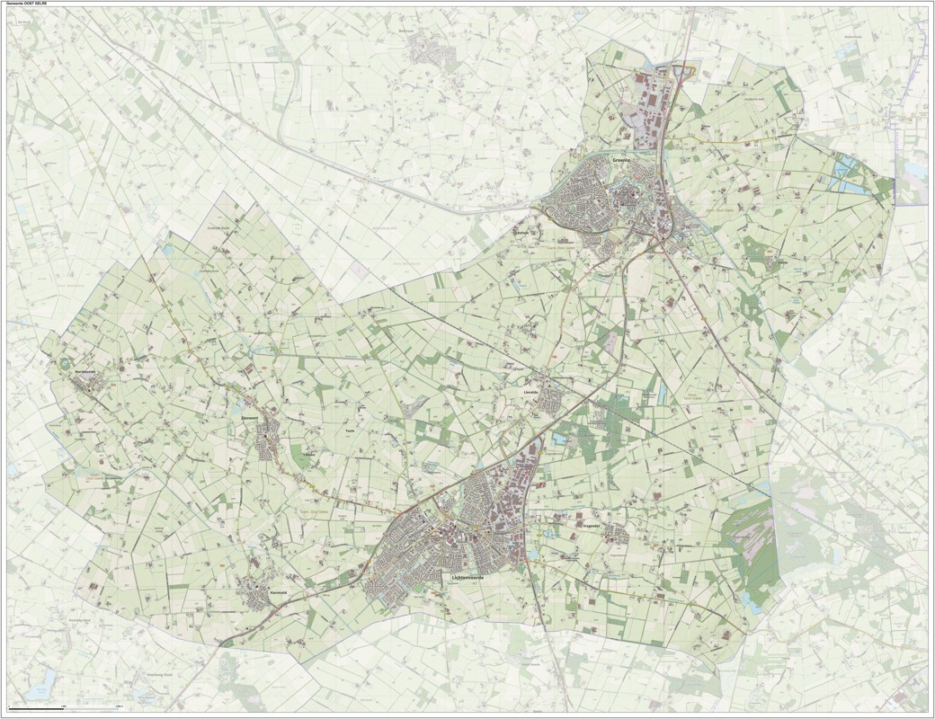 Gemeentekaart Oost Gelre, volgens de veelgebruikte TopoPlus-opmaak. Peildatum: juni 2023.