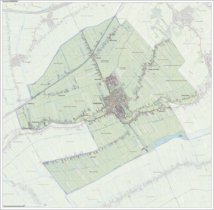 Gemeentekaart Oudewater, volgens de veelgebruikte TopoPlus-opmaak. Peildatum: juni 2023.