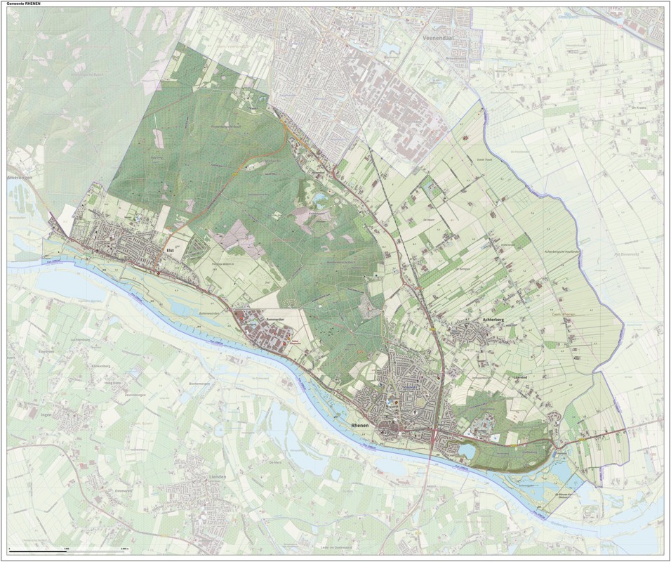 Gemeentekaart Rhenen, volgens de veelgebruikte TopoPlus-opmaak. Peildatum: juni 2023.