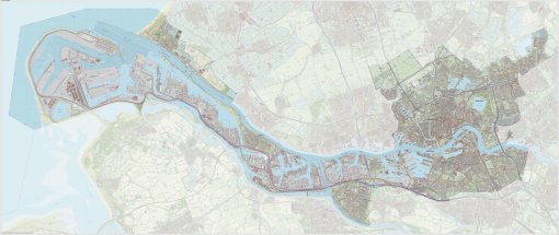 Gemeentekaart Rotterdam, volgens de veelgebruikte TopoPlus-opmaak. Peildatum: juni 2023.