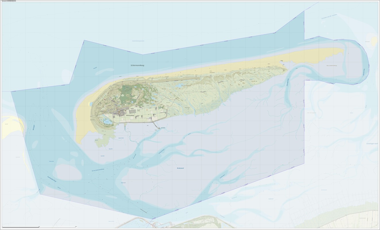 Gemeentekaart Schiermonnikoog, volgens de veelgebruikte TopoPlus-opmaak. Peildatum: juni 2023.