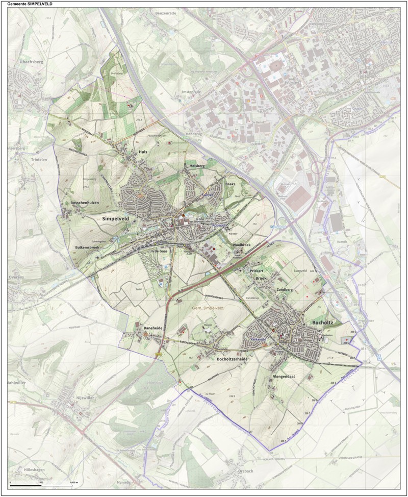 Gemeentekaart Simpelveld, volgens de veelgebruikte TopoPlus-opmaak. Peildatum: juni 2023.