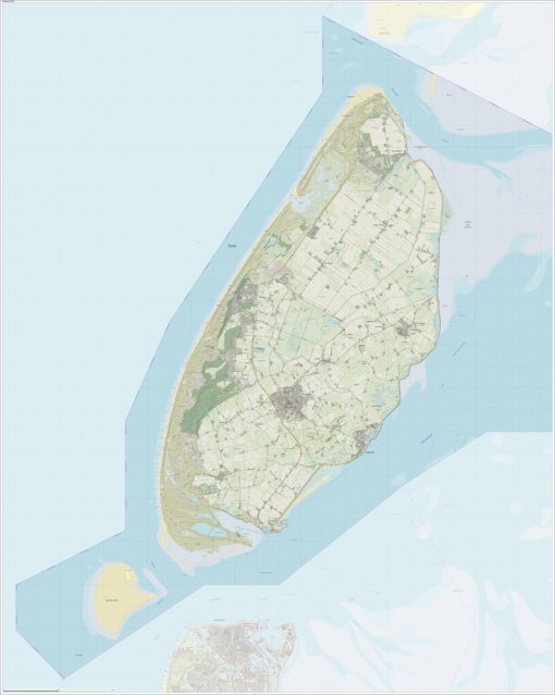 Gemeentekaart Texel, volgens de veelgebruikte TopoPlus-opmaak. Peildatum: juni 2023.
