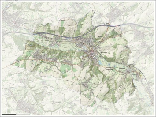Gemeentekaart Valkenburg aan de Geul, volgens de veelgebruikte TopoPlus-opmaak. Peildatum: juni 2023.