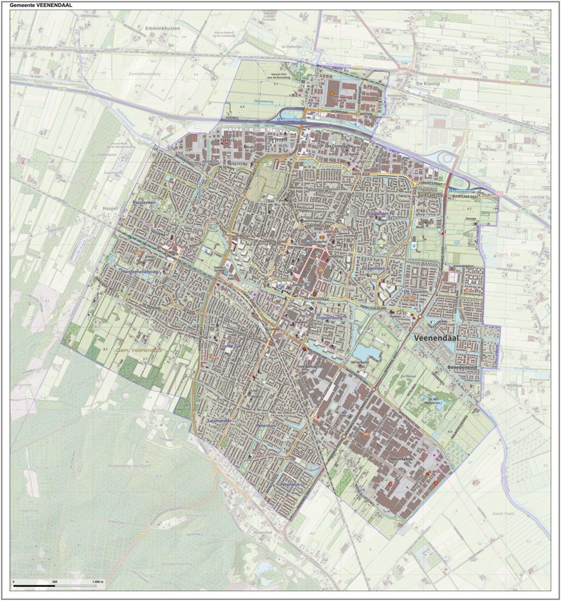 Gemeentekaart Veenendaal, volgens de veelgebruikte TopoPlus-opmaak. Peildatum: juni 2023.