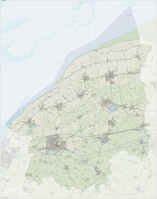 Gemeentekaart Waadhoeke, volgens de veelgebruikte TopoPlus-opmaak. Peildatum: juni 2023.