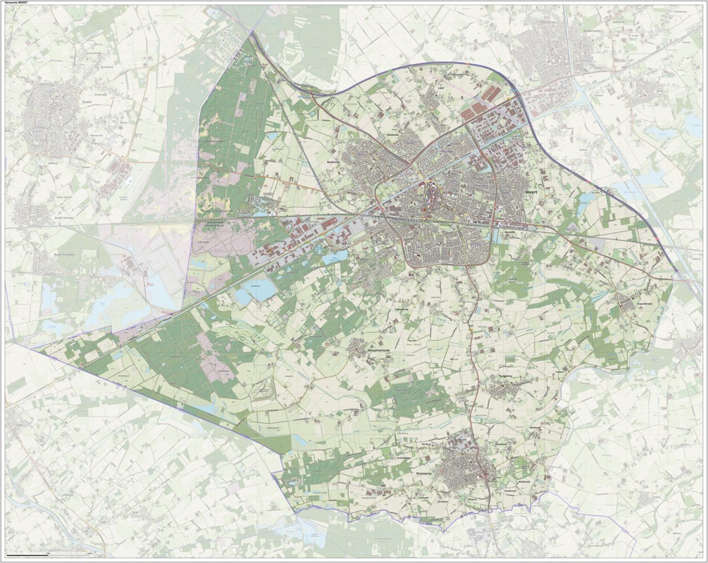 Gemeentekaart Weert, volgens de veelgebruikte TopoPlus-opmaak. Peildatum: juni 2023.