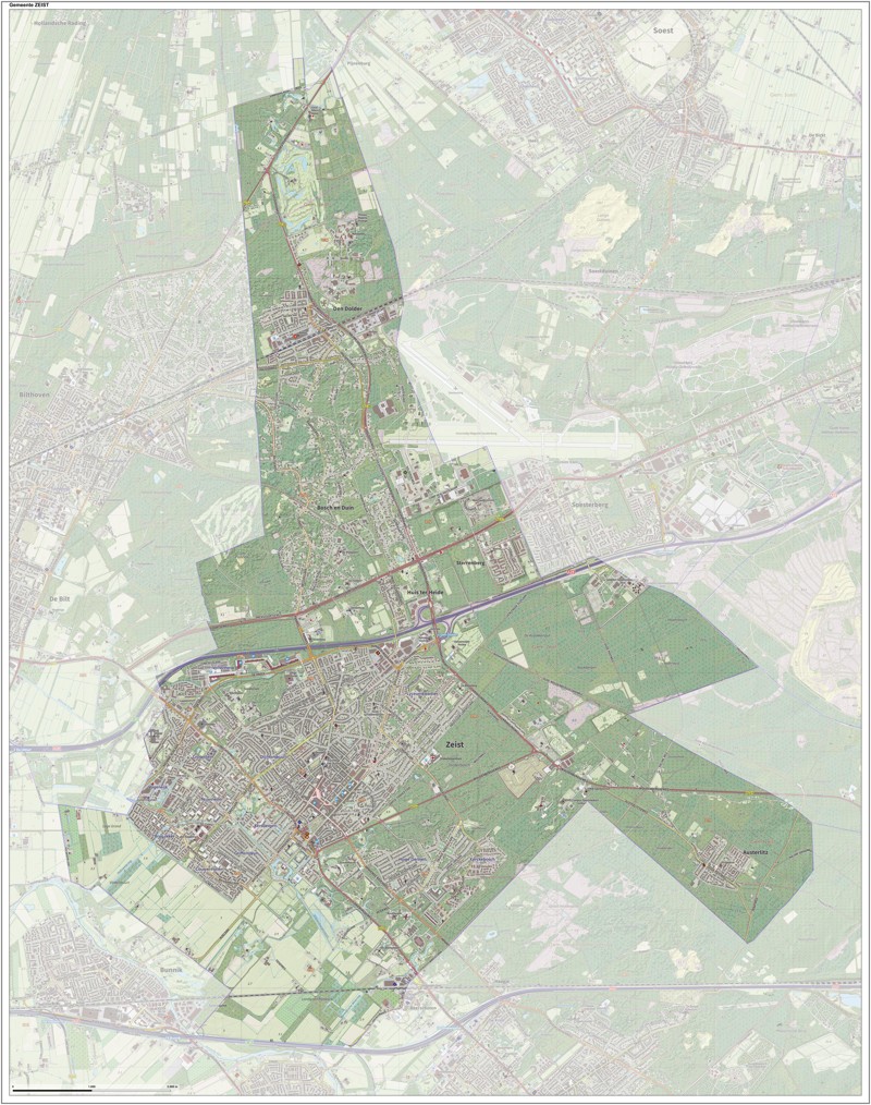 Gemeentekaart Zeist, volgens de veelgebruikte TopoPlus-opmaak. Peildatum: juni 2023.